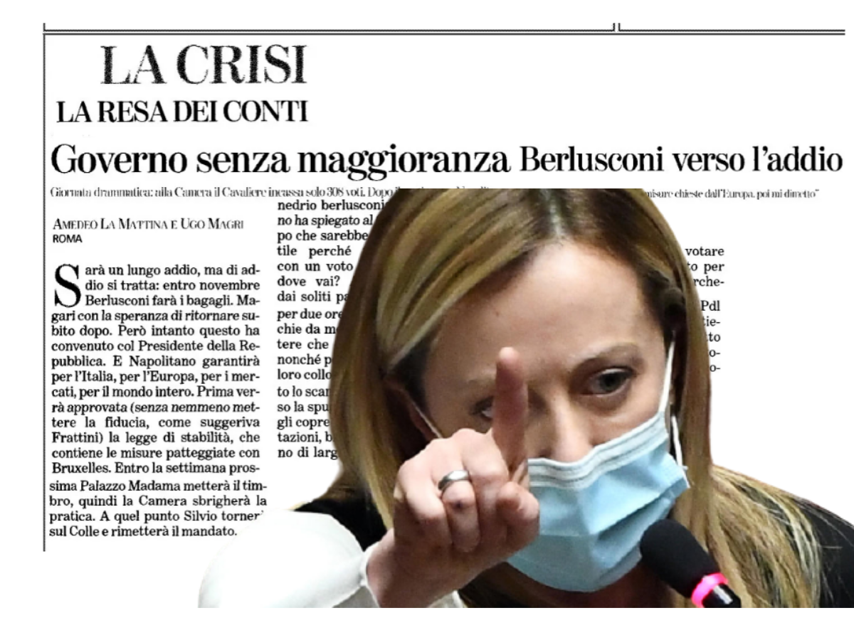 La leader di Fratelli d’Italia Giorgia Meloni ha ripreso e postato sui social un articolo de La Stampa del 9 novembre 2011 per portare alla luce una vicenda simile a quella odierna in merito alla crisi di Governo, ma a parti contrapposte.