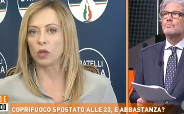 “Questa vicenda del coprifuoco è assolutamente irragionevole – dice arrabbiata Giorgia Meloni a Dritto e Rovescio, prendendosela con le decisioni del Governo Draghi-Speranza -.