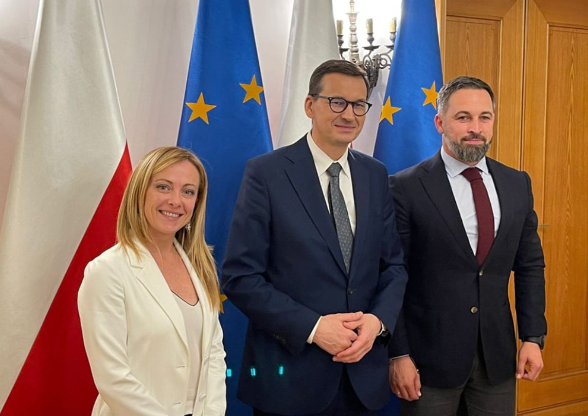 “Ieri sera a Varsavia con il leader di VOX Santiago Abascal siamo stati ospiti del premier polacco Mateusz Morawiecki. Tante idee e progetti in comune per far crescere la famiglia dei Conservatori Europei”.