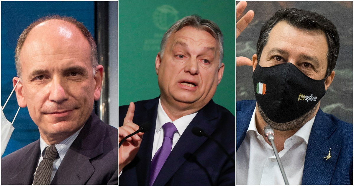 “Non si può stare allo stesso tempo con l’europeismo e con Orban. Non si può essere sostenitori insieme di Draghi e di Orban. Semplicemente, non si può”: è l’aut aut che il segretario dem Enrico Letta invia a Matteo Salvini. “L’alleanza dei sovranisti di Salvini e Meloni ha due primi ministri, Orban e Morawiecki. Sono gli unici due che l’anno scorso hanno messo il veto a Next Generation Ue al Recovery Plan che salva l’Italia. Solo la determinazione degli altri 25 li ha poi battuti”, aggiunge Letta.