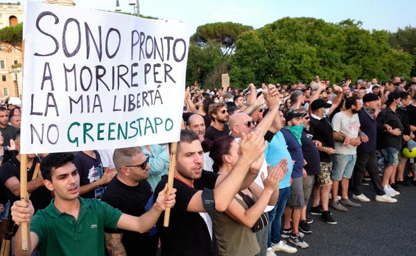 “No Green pass”, “viva l’Italia libera”. Circa 1.500 per la Questura le persone che domenica avevano sfilato nella Capitale. “Assassini, assassini, assassini”,
