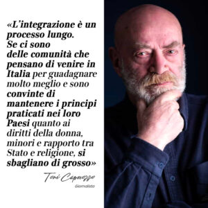 “Toni Capuozzo: «L’integrazione è un processo lungo. Se ci sono delle comunità che pensano di venire in Italia per guadagnare molto meglio e sono convinte di mantenere i principi praticati nei loro Paesi quanto ai diritti della donna, minori e rapporto tra Stato e religione, si sbagliano di grosso»