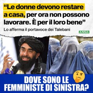 Talebani: “donne devono stare a casa”. Salvini: femministe di sinistra zitte?