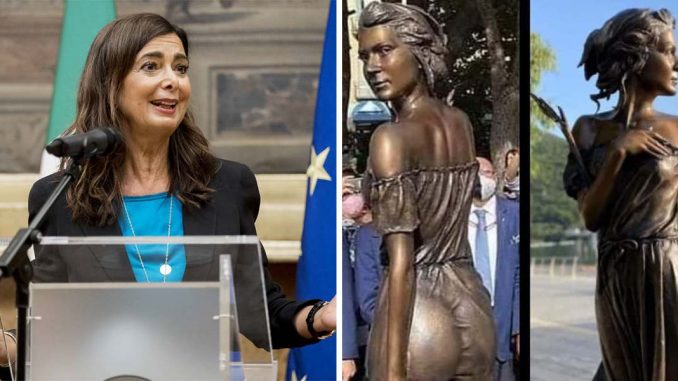 Scoppia la bufera per la statua della Spigolatrice inaugurata a Sapri, in provincia di Salerno, alla presenza delle autorità locali e del presidente M5s Giuseppe