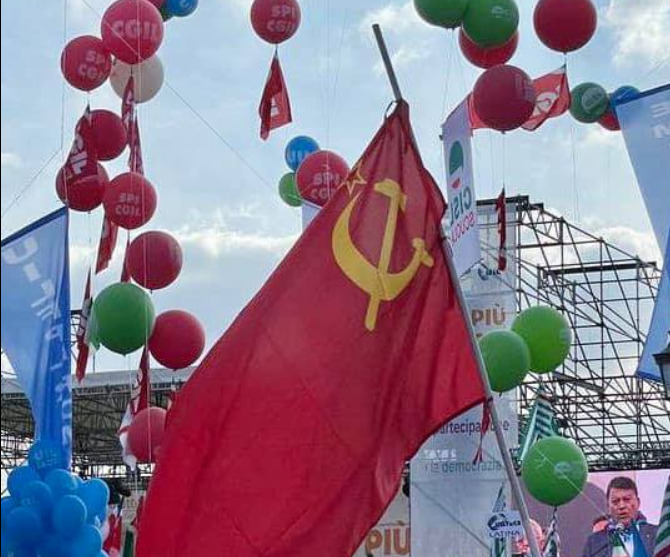 “Nella manifestazione contro tutti i fascismi e gli estremismi sventola la bandiera dell’Unione Sovietica, ovvero uno dei regimi più sanguinari della storia