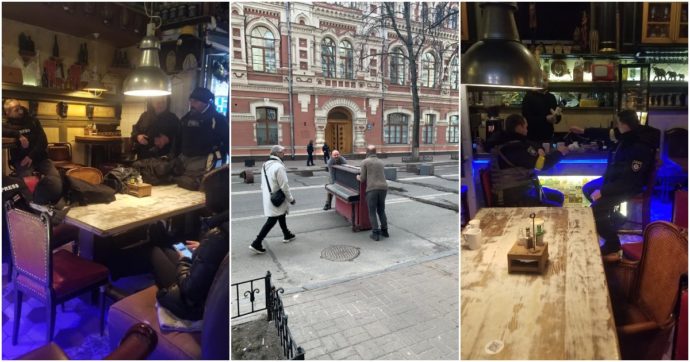Mentre Kiev è ridotta in macerie e altre cittadine limitrofe alla capitale dell’Ucraina sono state distrutte dai russi, il centro di Kiev si presenta intatto e spettrale. Anche durante la giornata, senza il coprifuoco, il silenzio è tombale: metà degli abitanti se ne sono già andati, l’altra metà è rintanata in casa o nei rifugi fra speranze (poche) di una rapida conclusione del conflitto e paure (molte) che anche le aree più esclusive possano finire sotto tiro. Eppure, nel cuore di un’Ucraina alle corde ma non ancora sottomessa c’è chi non ha perso la voglia di vivere e usa l’arma dell’ironia per scacciare gli incubi. “Qui da noi non ci si ferma mai. Se chiudiamo, significa che il nostro nemico ha già vinto la sua battaglia”. Il Buena Vista Social Bar era uno dei ritrovi cult della Capitale: musicacocktail, tanti giovani ma in quello stile un po’ retrò tipico dei locali in salsa cubana. A due passi dalla cattedrale di Santa Sofia, patrimonio dell’Unesco e cuore pulsante di quell’Ucraina che affonda le sue radici nella Rus di Kiev, ogni giorno – in piena guerra e sotto i bombardamenti – si danno appuntamento militarivolontari della resistenza, giornalisti e qualche sparuto avventore, che non rinunciano ad un bicchiere nemmeno durante l’allarme aereo. “Abbiamo deciso di rimanere aperti per lanciare un messaggio: non saranno i missili ed i carri armati a fermarci”. Max è il proprietario: gioviale, sorridente, ottimo inglese, l’umore è buono nonostante il pericolo. “Il nostro è un luogo dove si crea socialitàdove si mangiasi beve, si ascolta musica e si sta assieme e adesso, in questo clima surreale, è ancora più importante dimostrare la nostra fratellanza”.