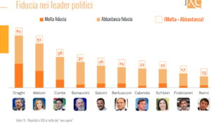 Oltre al sondaggio riguardante le intenzioni di voto, nel suo ultimo osservatorio politico Ixè ha “pesato” anche quella che sarebbe l’attuale fiducia che gli italiani ripongono nei vari leader politici.