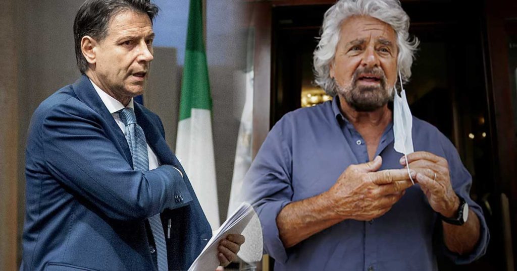 Il presidente del M5s, Giuseppe Conte, parlando coi cronisti in Transatlantico, interviene dopo i malumori causati dalle parole del fondatore dopo il deludente risultato